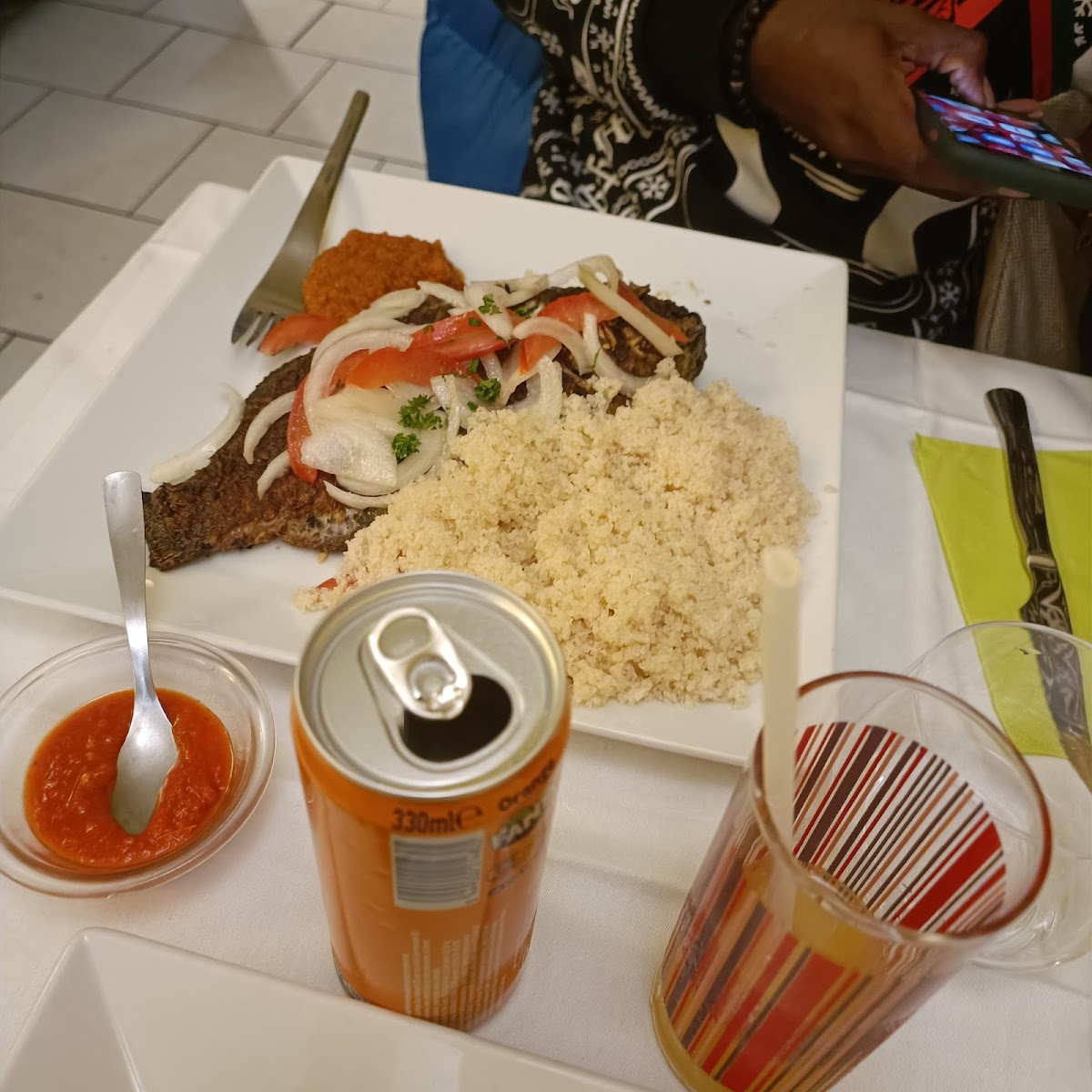 As you indulge in the delicious cuisine, allow the lively ambiance to envelop you—perfect for a casual meal with friends or a unique date night. The restaurant's decor showcases vibrant colors and cultural touches, creating a cozy environment that celebrates African heritage.